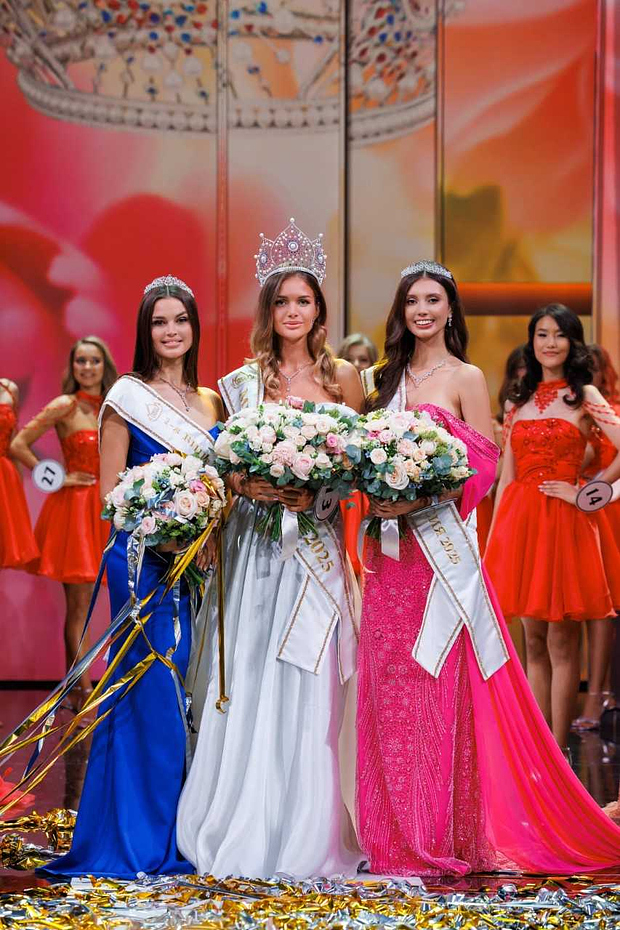 Слева направо: первая вице-мисс Алена Лесняк, «Мисс Россия — 2025» Анастасия Венза, вторая вице-мисс Виктория Макарова
